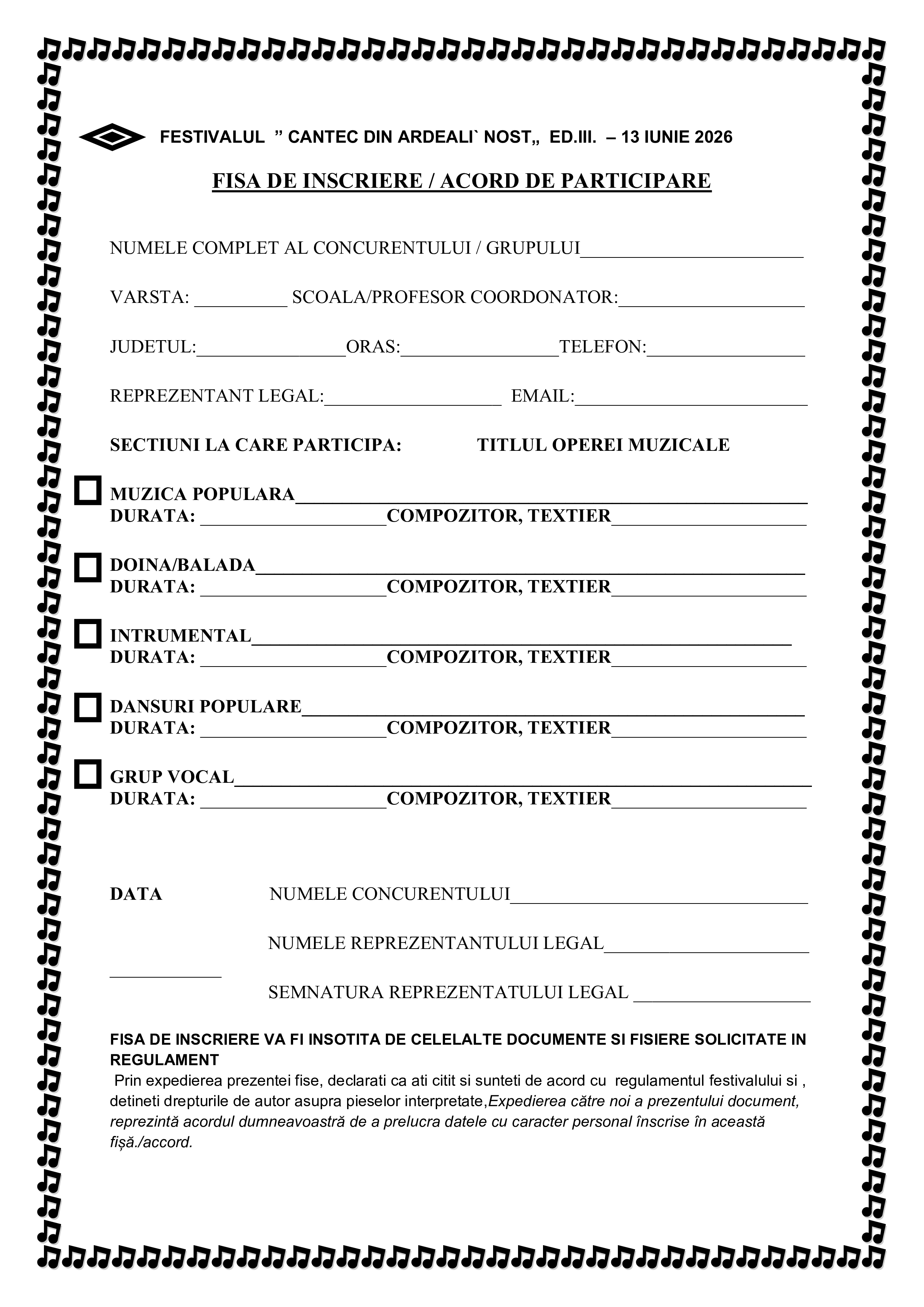 FIŞA DE ÎNSCRIERE ŞI ACORDUL DE PARTICIPARE COMPLETATE ȘI SEMNATE CU PIXUL, FOTOGRAFIATE CU TELEFONUL SAU SCANATE