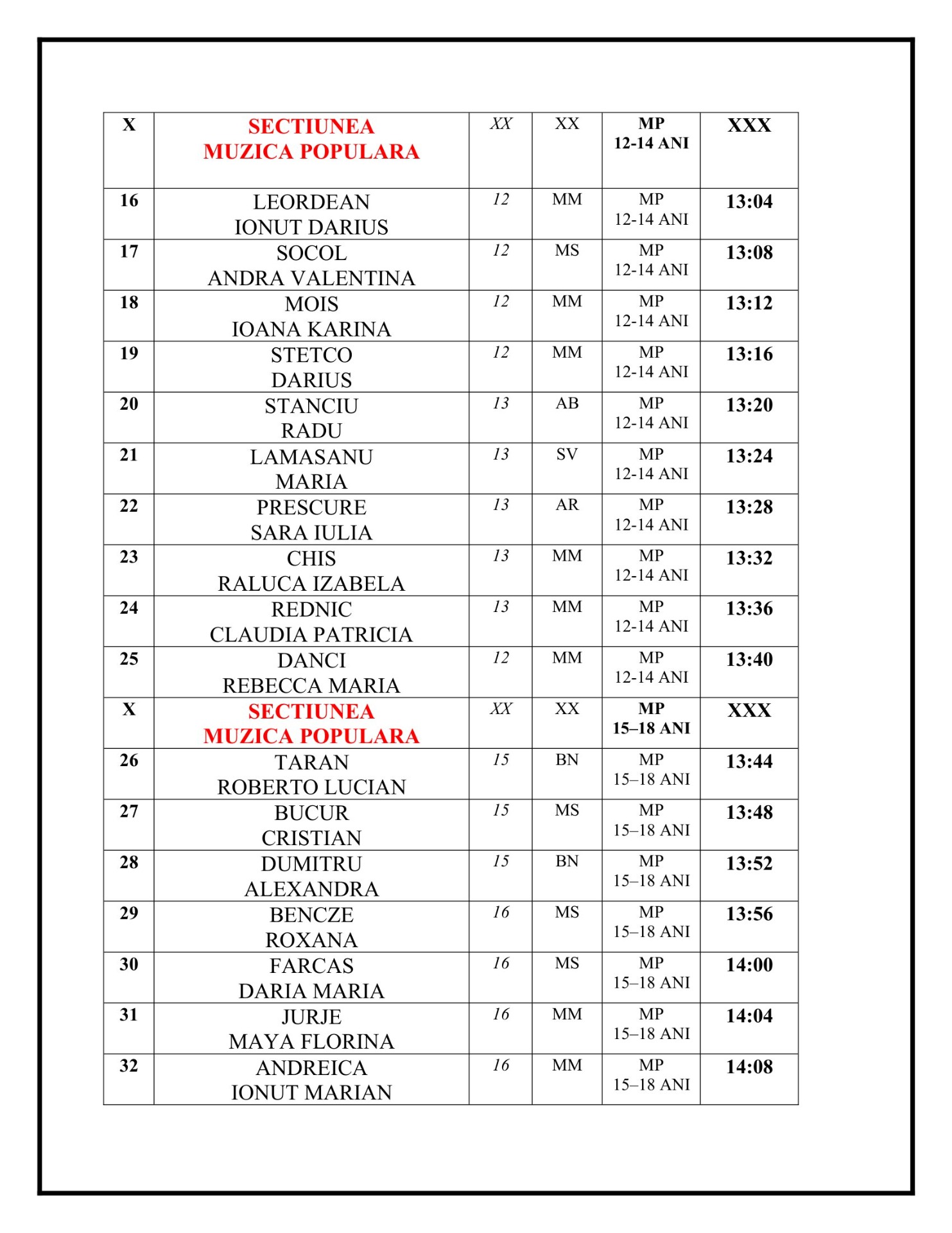 26 APRILIE 2026 - ORA 12:00